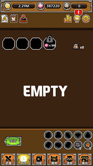 【商店】:玩家能在此領(lǐng)取免費(fèi)的寶石與金幣,也可購(gòu)買(mǎi)各種限時(shí)增益效果,像攻擊力提升之類(lèi)的。