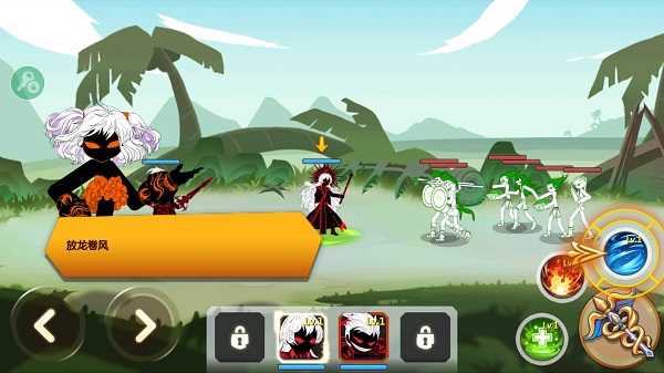 游戲里玩家可以同時安排四名火柴人英雄上陣,點擊就能進行切換。