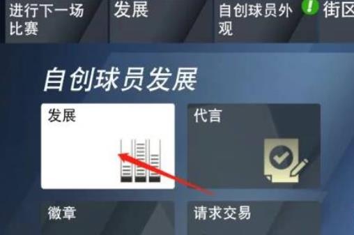 進入游戲后,打開輝煌生涯模式,然后點擊輝煌生涯首頁里的“發展”選項。