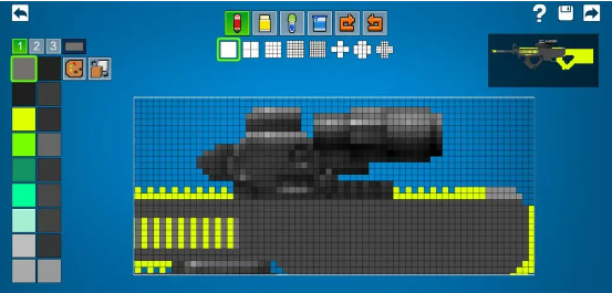 我們先依據導入的圖片復刻出武器的大致外形,再逐個給每個配件上色。