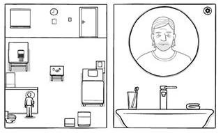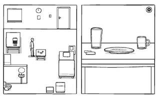之前的起床、吃早餐和洗漱都已經(jīng)做完了,接下來是11點的查房。需要去4個標有黑圈的地方,點擊放大后按下按鈕,然后和進來的護士交談。