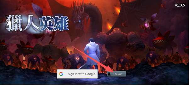 打開獵人英雄游戲,然后在主界面找到并點(diǎn)擊“Guest”按鈕。