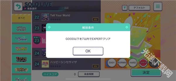 這5個難度模式中,前4個都能直接選擇,而第5個噩夢模式初始處于鎖定狀態。要開啟它,玩家得完成指定任務——在專家模式下,游玩該歌曲時獲得的good次數需少于7次。只有滿足這一條件,噩夢難度才會解鎖供玩家體驗,否則它將持續保持鎖定狀態。