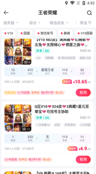 擁有海量的游戲賬號可供租賃,能夠充分滿足玩家的游戲需求。