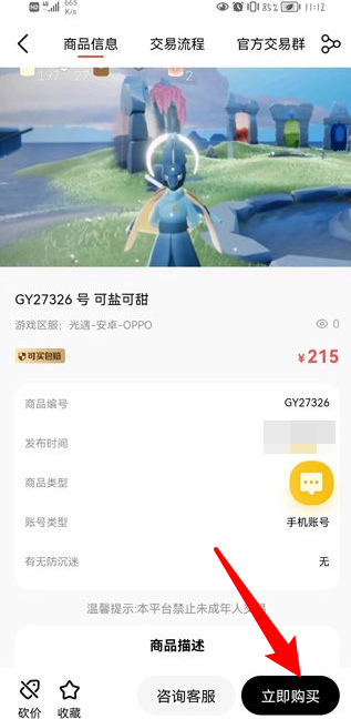 一鍵打開進入商品詳情頁點擊"立即購買"。