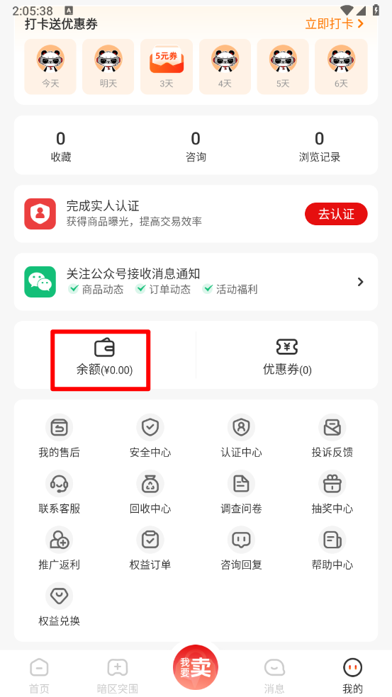 在我的頁面點擊"余額"一鍵打開。
