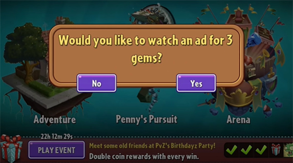 玩家能夠通過觀看廣告來獲取鉆石,不過每天最多只能觀看三次,每次觀看可獲得3顆鉆石。