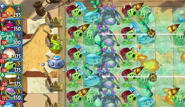 向日葵通常種在靠后的幾排,而輸出型植物則種在前排,這樣它們就能直接攻擊僵尸了。