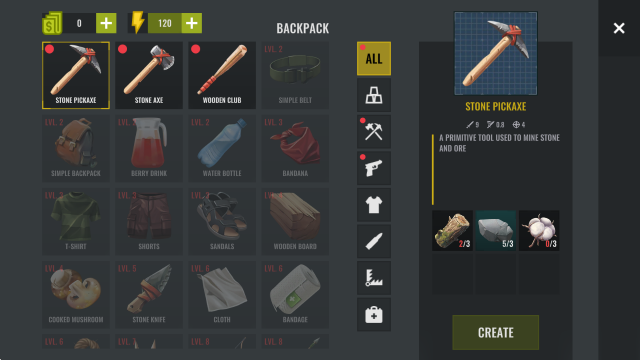 在不同地點搜集資源是生存的關鍵。你得備一把斧頭和一把鎬子,用來砍樹,或是在森林里挖掘黏土與礦石。途中或許會碰到垃圾、寶箱或是廢棄車輛,這些東西里說不定藏著有用的物品。