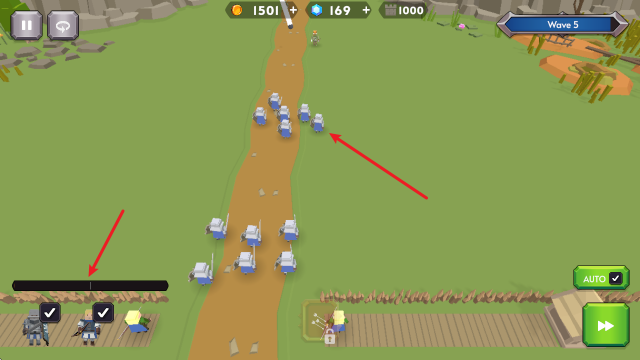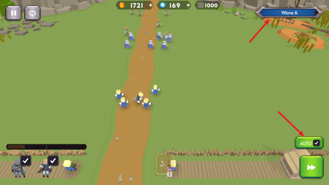 右下角有自動戰斗功能,開啟后在消滅完一波敵人時,就能自動進入下一波挑戰。