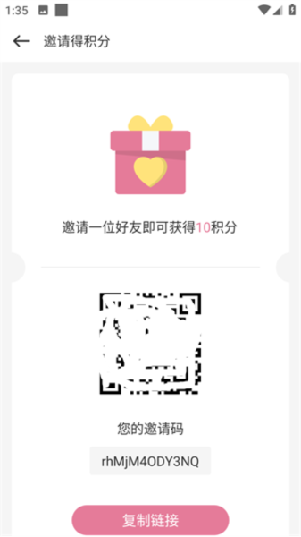 最后只需分享自己的二維碼或邀請碼就行,每成功邀請一位好友都能獲得10積分。