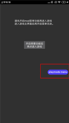 在本站的猛鬼宿舍游戲啟動后,先點擊playmods menu選項,打開對應的菜單界面。