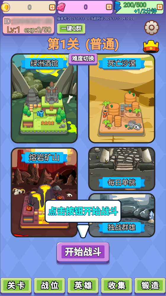 啟動(dòng)游戲后,點(diǎn)擊屏幕上醒目的膠機(jī)按鈕,就能準(zhǔn)備開(kāi)啟一場(chǎng)新的戰(zhàn)斗挑戰(zhàn)。