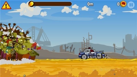 駕駛與生存之道:在橫版2D的公路上疾馳,操控轉向時務必謹慎,一旦撞上僵尸就會降低速度,必須在極速前進和保障安全之間把握好平衡。