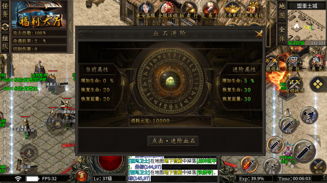 血石進階:消耗元寶進行進階,每一級都會獲得生命屬性,還能提高生命和藍量的恢復速度。