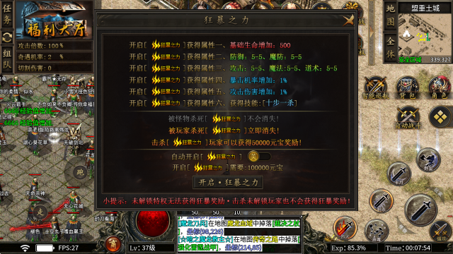 狂暴之力:激活需消耗100000元寶,可解鎖六大強力屬性,幫助玩家更輕松地進行開荒與發育!