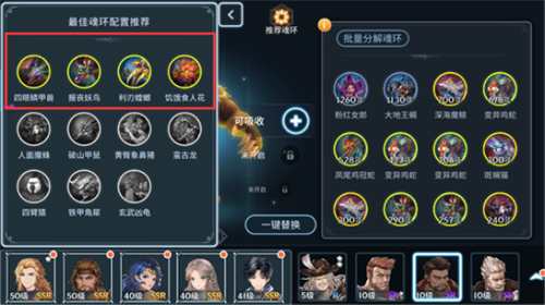 除了兩個必須攜帶的魂環外,其余魂環可以從防御、治療增益等類型中挑選。
