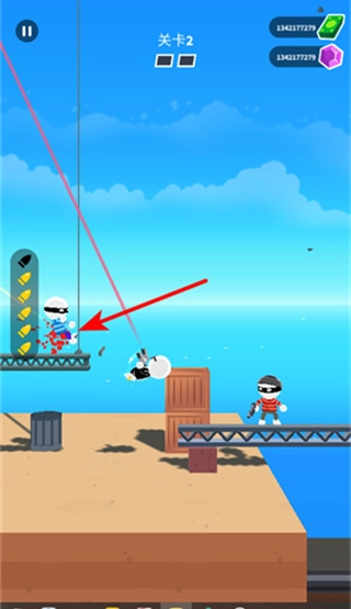 點擊屏幕就能啟動,角色會自動跳動并進入慢動作狀態,你只需要在紅線對準敵人的瞬間點擊射擊就行。整個操作簡單明了,不用復雜學習,新手也能很快上手。