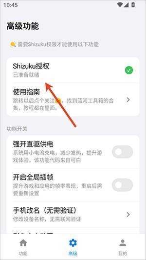 激活的步驟很簡單,先把Shizuku激活,接著就能在藍河工具箱里完成授權操作了。