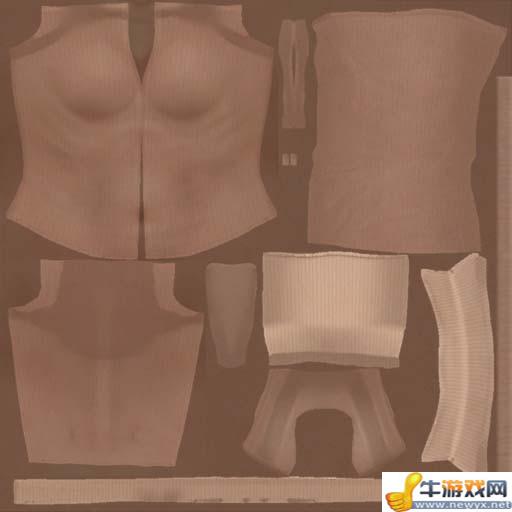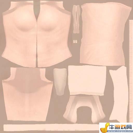 要制作濕身透明效果,需要衣服下面的皮膚,從游戲中導出TRU.EXE_0x9B12C96F這張圖出來作為皮膚素材。