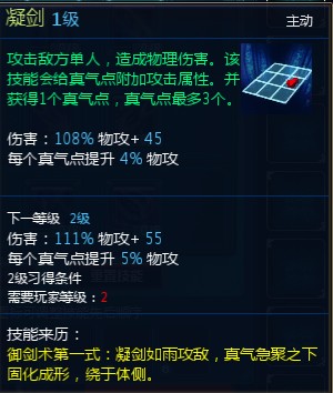 1、御劍術的三招,都是單體傷害,每一個技能都能增加一個真氣點,真氣各種提升傷害。前期必學的技能。