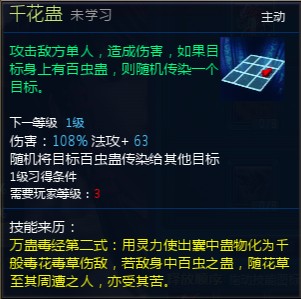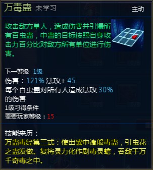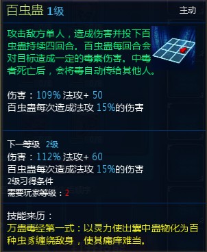 1、萬蠱毒經三式,優秀的攻擊成長,高輸出,不俗的DOT,隱藏的AOE技能,也是四個職業中唯一第一組技能就能AOE的職業。