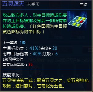 2、五靈符法三式,三招強力的AOE技能,法系傷害對很多物理系人物是致命的。嘛…依然要說一句,技能動畫那是相當華麗。