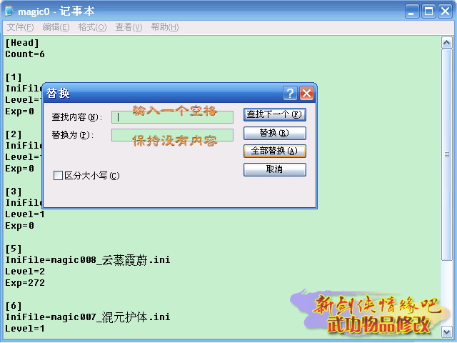 下面說一下快速消除空格的方法(借用新劍俠情緣吧的圖片,反正原作者也是我):