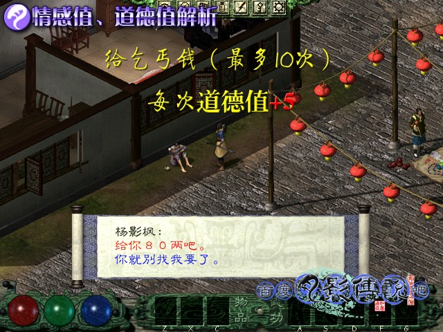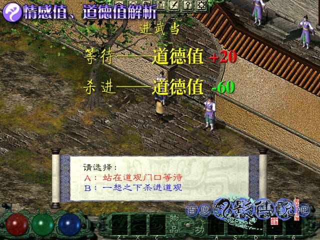 《月影》里有很多很多變量,決定著劇情的走向,其中,對正邪選擇最有用的有兩個,一個是情