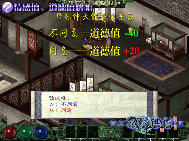 感值(SenseVal),一個是道德值(EvilVal)(可能有人要問,Evil明明是邪惡的意思,為什么這里要翻譯成“道德值”?因為,做好事,這個值會增加,所以這里翻譯成道德值了)。在正邪決定時(納蘭真失蹤),它們是這樣發揮作用的: