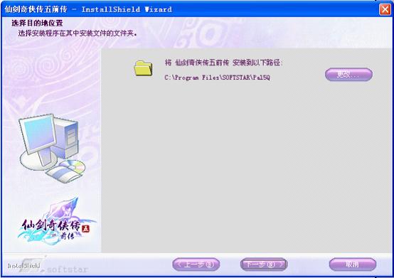 在此頁面選擇《仙劍奇俠傳五前傳》客戶端在您電腦硬盤上的存放區域,確保您選擇的硬盤空間足夠,選擇好后,點擊"下一步"按鈕