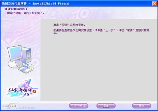 點擊”安裝“按鈕,《仙劍奇俠傳五前傳》客戶端將開始安裝到您的電腦