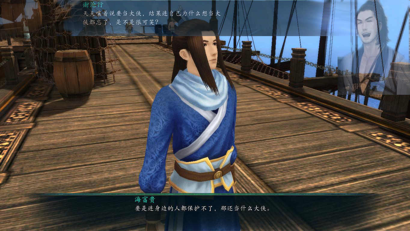 謝滄行的死無疑是本作最震撼人心的一部分。灑脫,隨和,強大。就是對謝滄行的全部印象。然而細讀大叔,卻發現他是一位真正的奇俠,他與李逍遙打了三天三夜不分勝負,最后到處流浪借著找對手的借口去尋找慰籍。