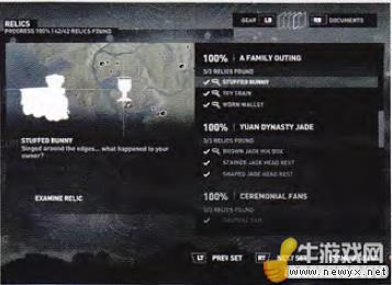 神像、文件、GPS記憶體散落在島嶼的各處。收集它們可以讓你獲得經驗以及更加深入的了解這個島嶼的歷史和現狀。神像和文件可以隨時在玩家狀態菜單查看。留意收集這些物品可以讓你更快的獲得技能點。