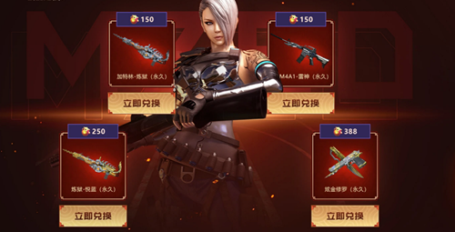 煉獄-悅藍(永久)、加特林-煉獄(永久)、M4A1-雷神(永久)等