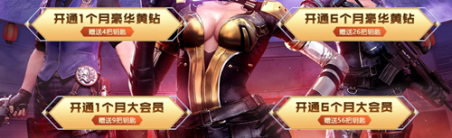 在活動頁面開通1個月豪華黃鉆得4把鑰匙,開通6個月豪華黃鉆得26把鑰匙,開通1個月大會員得9把鑰匙,開通6個月大會員得56把鑰匙