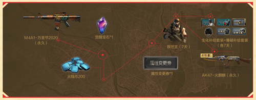 M4A1-萬圣節2020(永久)、AK47-火麒麟(永久)、屬性變更券等