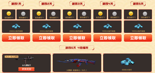 活動期間,累計游戲天數兌換對應獎勵,累計火線幣儲值額度。累積火線幣額度累積游戲5天后可以領取。領取源武器的永久及永久資格后,之后只需每月游戲1次,累計(3月、4月),即可一直保留該永久道具。如果其中任意月份未能游戲1局則道具將會被收回。