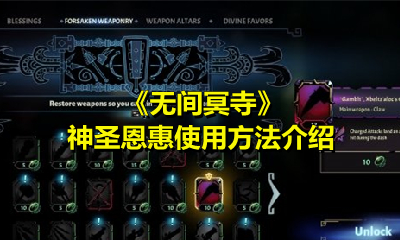 在《無間冥寺》這款動作冒險游戲中,神圣恩惠可以為玩家帶來更多次數的武器選擇機會,而下面則是小編為大家帶來的《無間冥寺》神圣恩惠使用方法介紹,感興趣的小伙伴可以看一下。