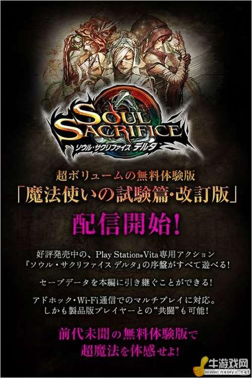 PSV新作《靈魂獻祭:DELTA》已經于2014年3月6日發售,其售價為4980日元,下載版售價則為3900日元,官方繁體中文版和日版同步發售。而日前官方于3月14日配信了新的免費體驗版“魔法使的試驗篇·改訂版”,將允許玩家們體驗正式版序盤部分的內容,并且支持玩家們與正式版用戶進行本地聯機,同時也支持多人在線聯機,而體驗版的存檔也能夠繼承到正式版中。