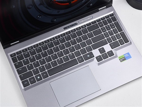 機(jī)械革命耀世16 Ultra鍵盤(pán)手感出色,方向鍵也采用了全高設(shè)計(jì)。右上角設(shè)計(jì)有獨(dú)立的電源鍵和性能模式快速切換鍵,同時(shí)帶有獨(dú)立數(shù)字鍵區(qū)。其觸控板和腕托面積都非常大,前者也沒(méi)有為了追求腕托對(duì)稱而放在腕托中間,而是考慮到操控體驗(yàn)放在了空格鍵正下方。