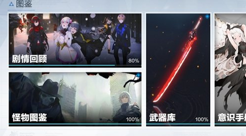 包括劇情回顧、怪物圖鑒、武器庫和意識手冊四個部分