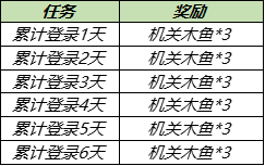活動期間累計登錄6日,總共可獲得機關木魚*18